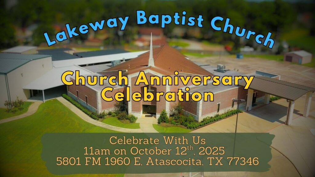« All Events This event has passed. Church Anniversary October 12, 2025 @ 10:00 am - 3:00 pm « Sunday School Morning Worship Service » Add to calendar Google Calendar iCalendar Outlook 365 Outlook Live Details Date: October 12, 2025 Time: 10:00 am - 3:00 pm Event Category: Special Activities Venue Lakeway Baptist Church 5801 Fm 1960 Rd E Humble, TX 77346 United States + Google Map Phone (281)441-9473 Organizer Lakeway Baptist Church Phone (281) 441-9473 Email office@lakewaybaptist.org View Organizer Website Related Events Men’s Fellowship Breakfast March 14 @ 8:00 am - 10:00 am Men’s Fellowship Breakfast April 11 @ 8:00 am - 10:00 am Men’s Fellowship Breakfast May 9 @ 8:00 am - 10:00 am